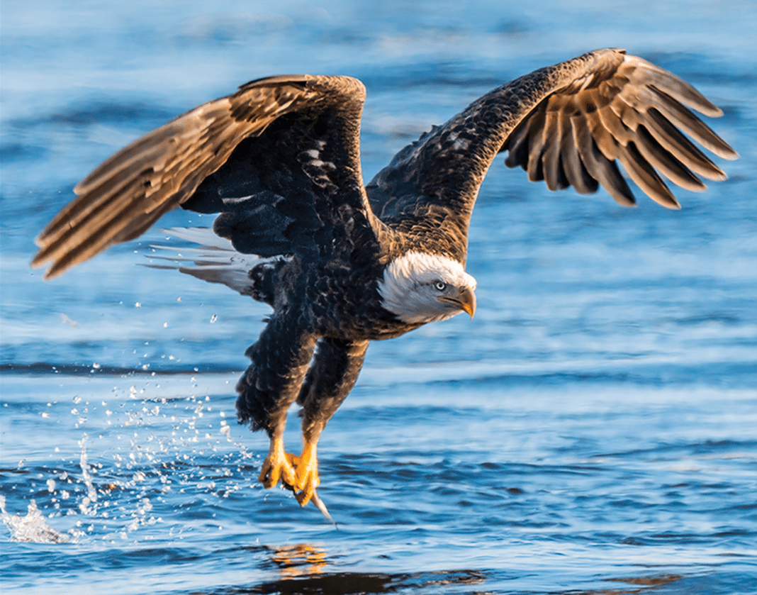 From December through February, Missouri’s winter eagle watching is spectacular. Because of Missouri’s big rivers, many lakes, and abundant wetlands, the Show-Me state is one of the leading lower 48 states for bald eagle viewing. Each fall, thousands of these great birds migrate south from their nesting range in Canada and the Great Lakes states to hunt in Missouri. Eagles take up residence wherever they find open water and plentiful food. More than 2,000 bald eagles are typically reported in Missouri during winter.